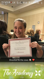 I have also gained the opportunity to participate in over 100 service hours including working with Special Olympic athletes within Maryville and cheering on young girls at Girls on the Run. This past term I served as the Vice President of Membership Education, where I mentored 38 new members after recruitment and helped them to get adjusted into our sorority. I was nominated to attend our sorority's national convention in Phoenix, AZ in the summer of 2018 along with three other girls from our chapter, where I was able to meet other sisters across the nation.These are just a handful of experiences that have helped shape me into the woman I am today.